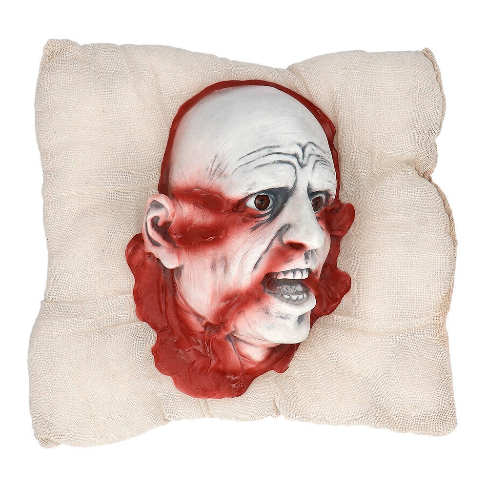 Dit griezelige kussen (38 x 30 cm) lijkt rechtstreeks uit een scène van een horrorfilm te komen! Het horror kussen met realistisch bloederig hoofd is dé perfecte decoratie om mensen te laten schrikken. Gegarandeerd een succes als Halloween versiering thuis of als onderdeel van een angstaanjagend spookhuis.