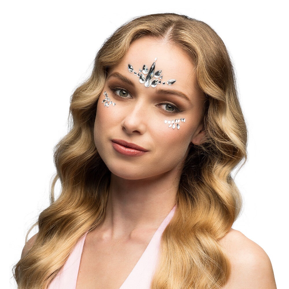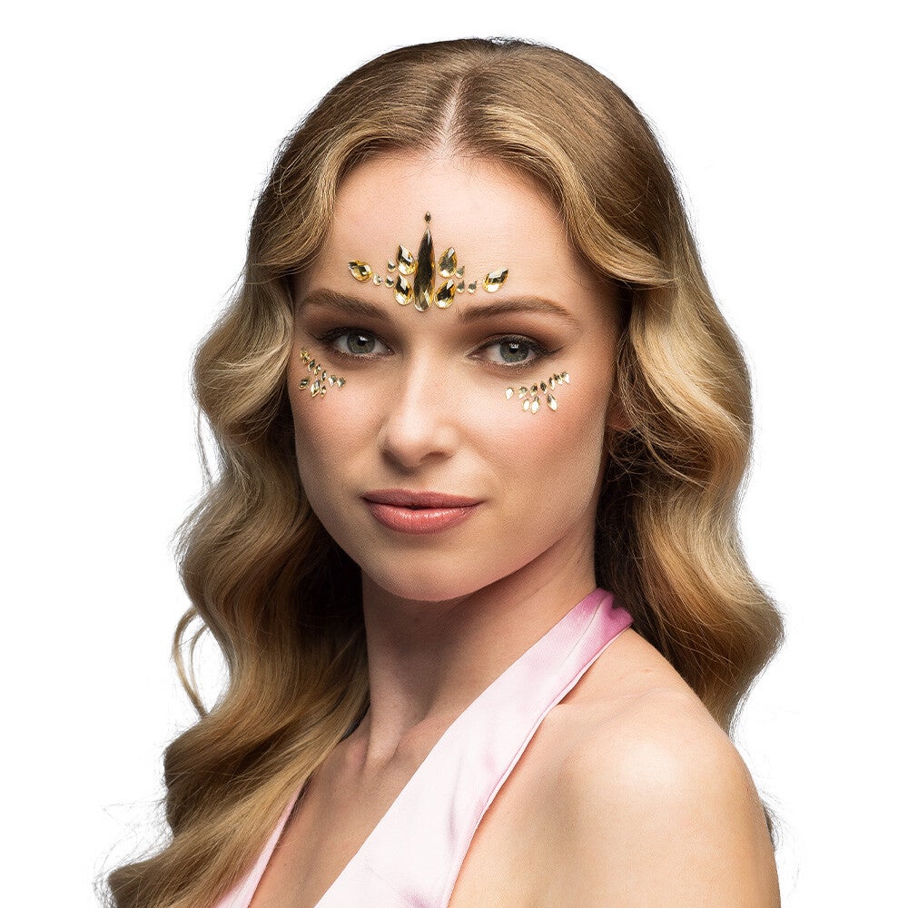 Stralende gezichtsjuwelen, beschikbaar in 3 kleuren: roze, goud en zilver. De zelfklevende glimmende steentjes creëren een schitterende look voor dé ultieme festival make-up. Een must-have voor zomerse festivals of betoverende fantasy kostuums voor carnaval, themafeesten of cosplay.